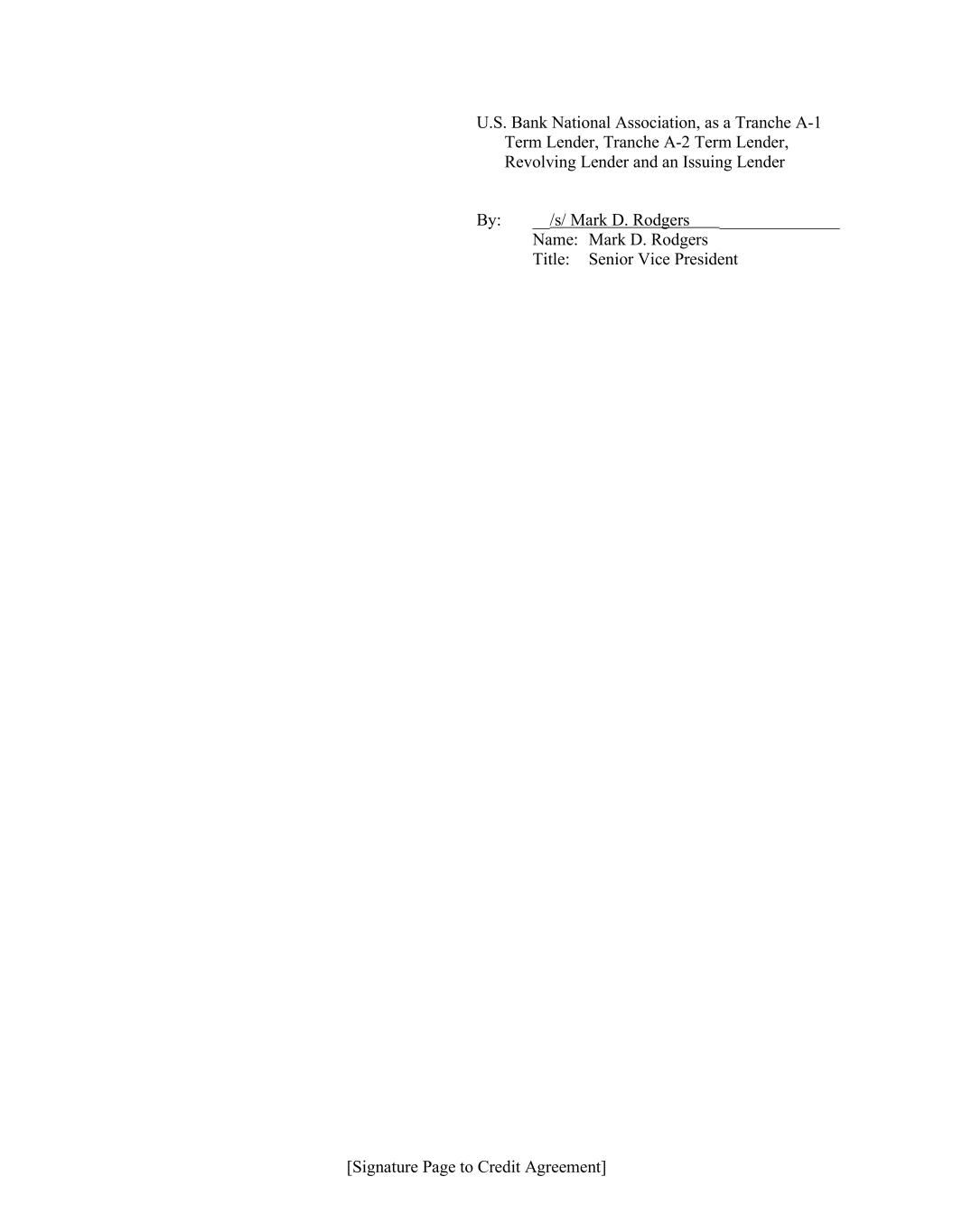 [Signature Page to Credit Agreement] U.S. Bank National Association, as a Tranche A-1 Term Lender, Tranche A-2 Term Lender, Revolving Lender and an Issuing Lender By: __/s/ Mark D. Rodgers ______________ Name: Mark D. Rodgers Title: Senior Vice President