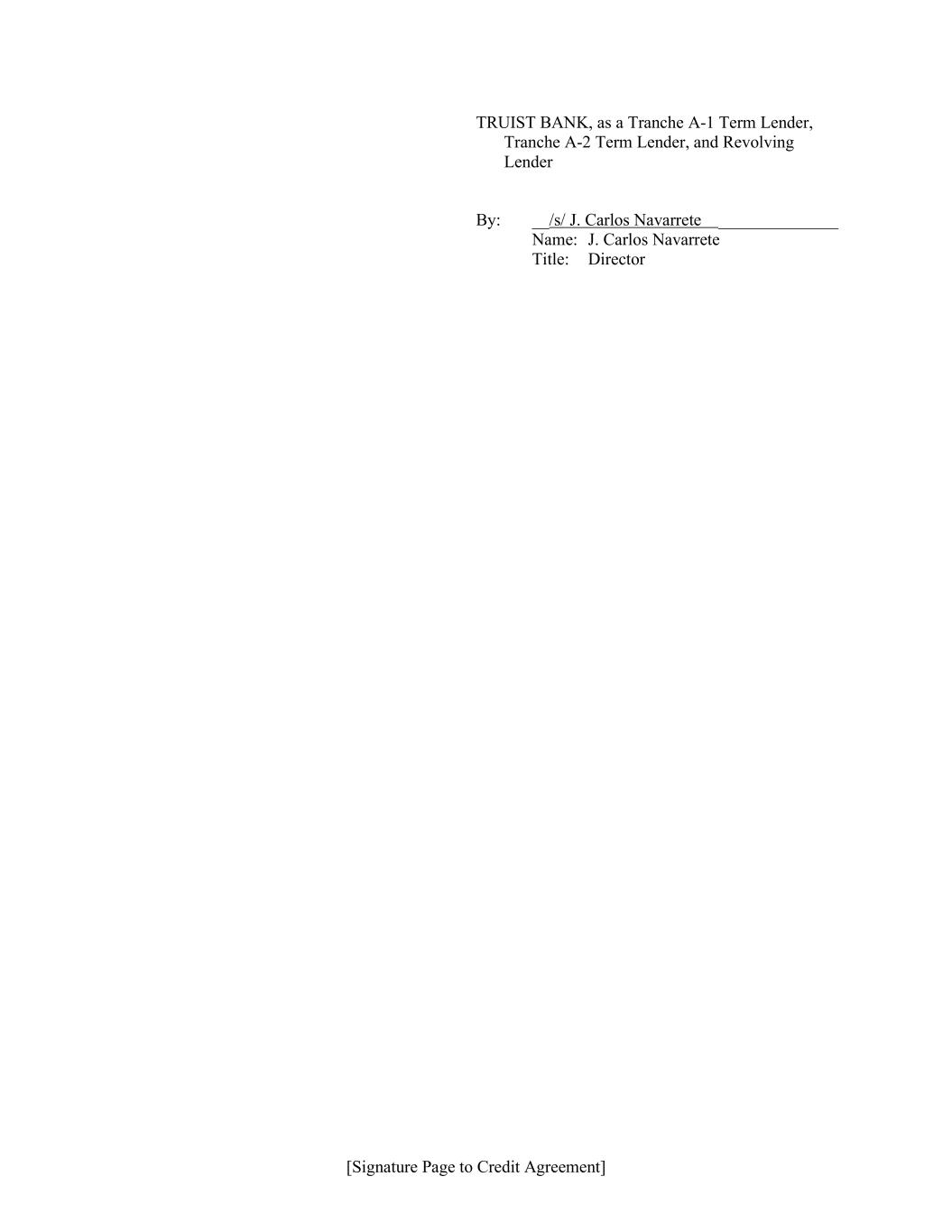 [Signature Page to Credit Agreement] TRUIST BANK, as a Tranche A-1 Term Lender, Tranche A-2 Term Lender, and Revolving Lender By: __/s/ J. Carlos Navarrete ______________ Name: J. Carlos Navarrete Title: Director