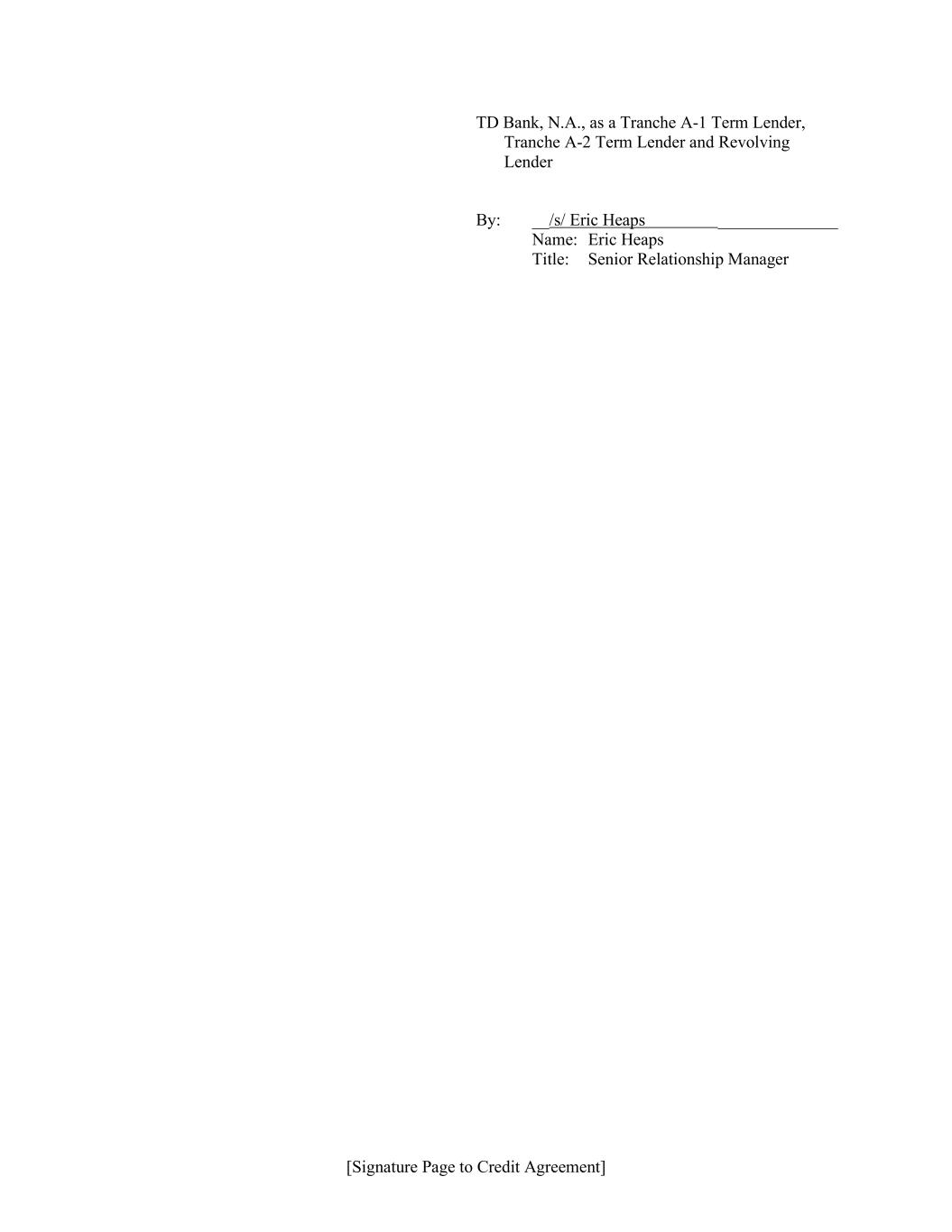 [Signature Page to Credit Agreement] TD Bank, N.A., as a Tranche A-1 Term Lender, Tranche A-2 Term Lender and Revolving Lender By: __/s/ Eric Heaps ______________ Name: Eric Heaps Title: Senior Relationship Manager