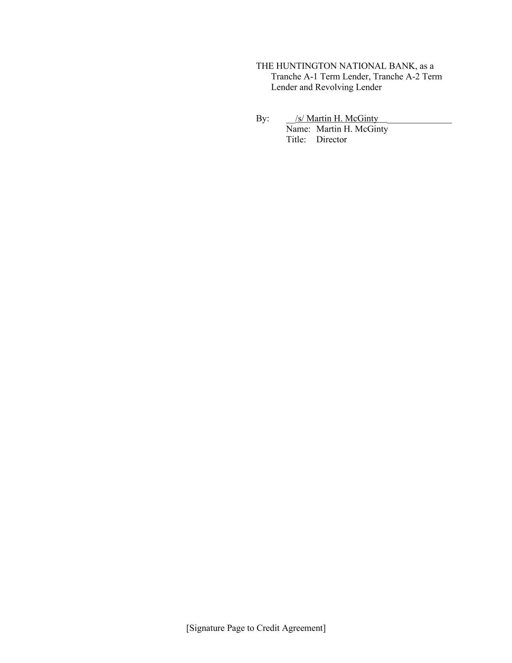 [Signature Page to Credit Agreement] THE HUNTINGTON NATIONAL BANK, as a Tranche A-1 Term Lender, Tranche A-2 Term Lender and Revolving Lender By: __/s/ Martin H. McGinty ______________ Name: Martin H. McGinty Title: Director