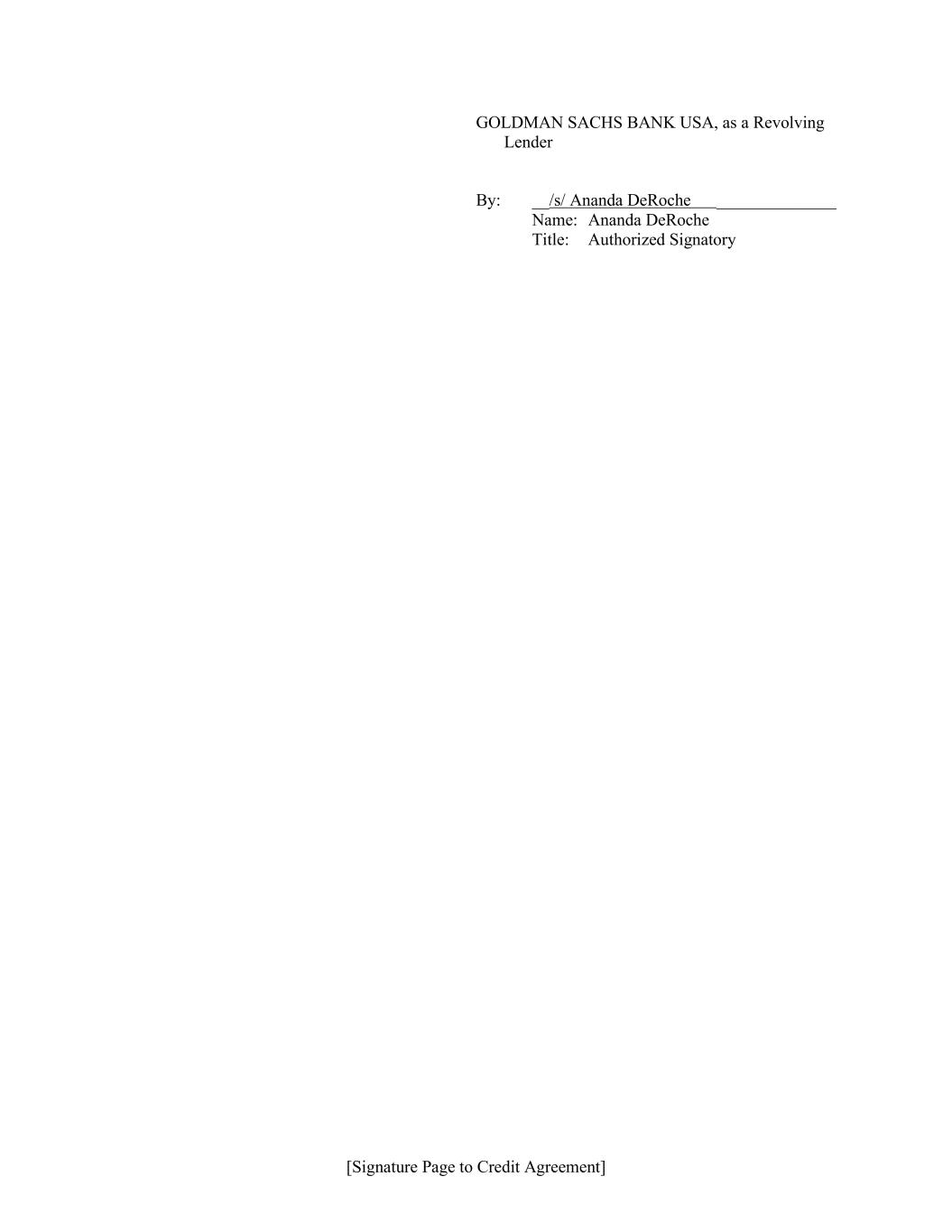 [Signature Page to Credit Agreement] GOLDMAN SACHS BANK USA, as a Revolving Lender By: __/s/ Ananda DeRoche ______________ Name: Ananda DeRoche Title: Authorized Signatory