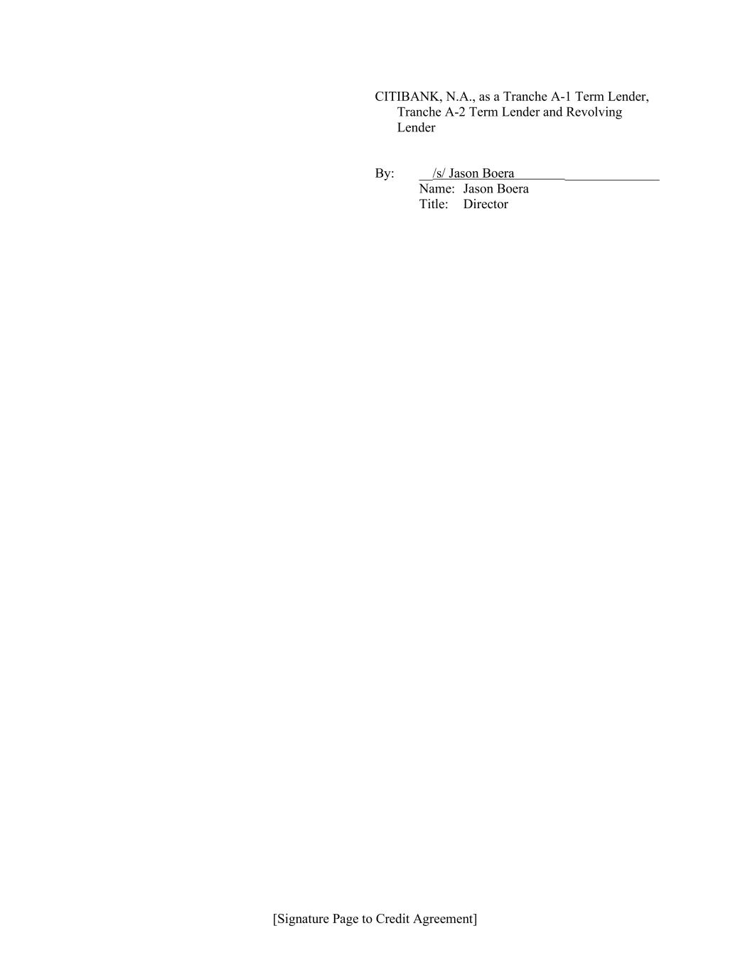 [Signature Page to Credit Agreement] CITIBANK, N.A., as a Tranche A-1 Term Lender, Tranche A-2 Term Lender and Revolving Lender By: __/s/ Jason Boera ______________ Name: Jason Boera Title: Director