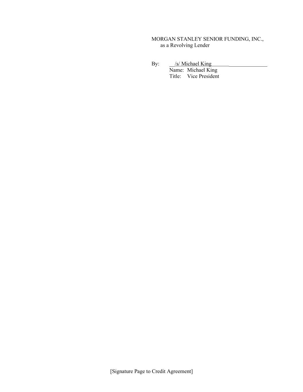 [Signature Page to Credit Agreement] MORGAN STANLEY SENIOR FUNDING, INC., as a Revolving Lender By: __/s/ Michael King ______________ Name: Michael King Title: Vice President