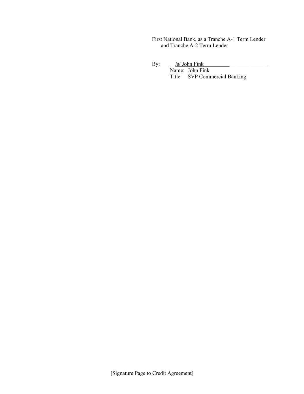 [Signature Page to Credit Agreement] First National Bank, as a Tranche A-1 Term Lender and Tranche A-2 Term Lender By: __/s/ John Fink ______________ Name: John Fink Title: SVP Commercial Banking