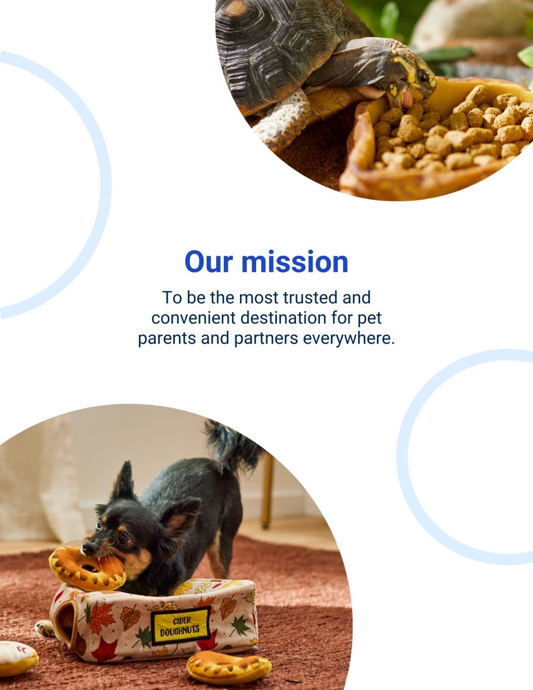 Our mission To be the most trusted and convenient destination for pet parents and partners everywhere.