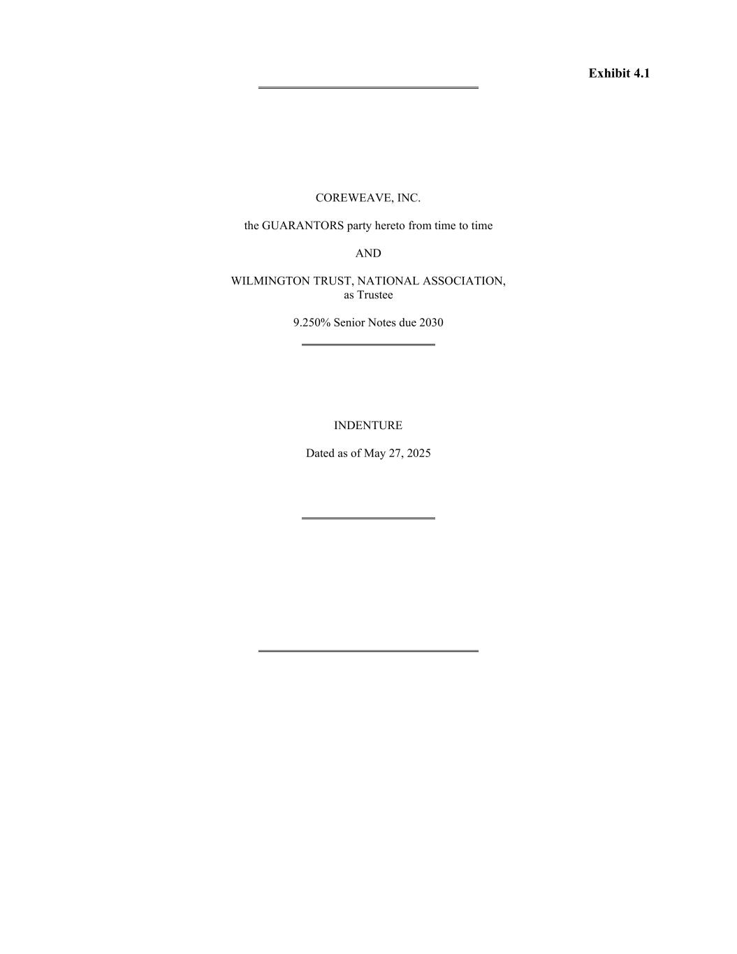 Exhibit 4.1 COREWEAVE, INC. the GUARANTORS party hereto from time to time AND WILMINGTON TRUST, NATIONAL ASSOCIATION, as Trustee 9.250% Senior Notes due 2030 INDENTURE Dated as of May 27, 2025