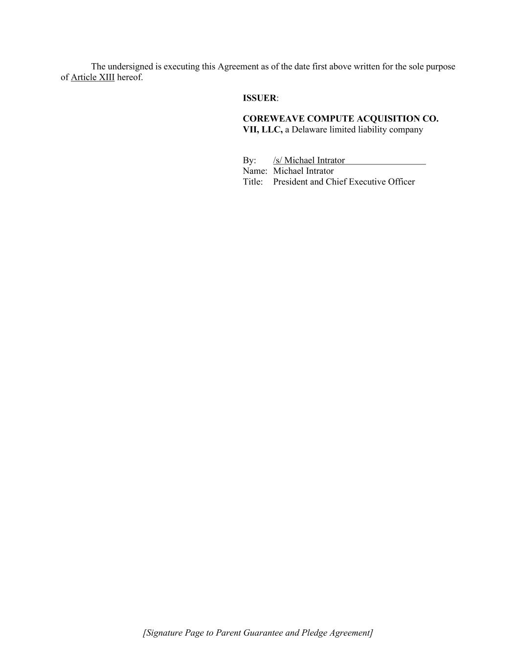 [Signature Page to Parent Guarantee and Pledge Agreement] The undersigned is executing this Agreement as of the date first above written for the sole purpose of Article XIII hereof. ISSUER: COREWEAVE COMPUTE ACQUISITION CO. VII, LLC, a Delaware limited liability company By: /s/ Michael Intrator Name: Michael Intrator Title: President and Chief Executive Officer