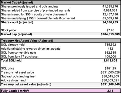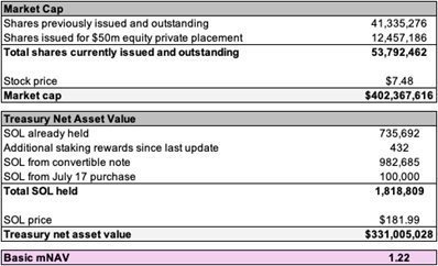 1 Uses the SOL price as of 4:00pm EST on Sunday, July 20, 2025 throughout this press release.