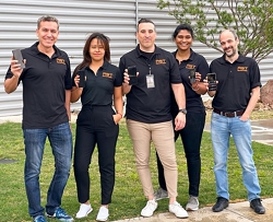 AST SpaceMobile engineers who supported the first voice calls over BlueWalker 3 outside company headquarters in Midland, Texas