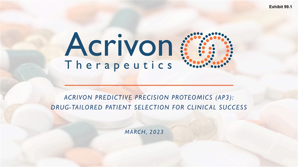 Exhibit 99.1 Acriv Acrivon on Thera Therapeutics peutics ACRIVON PREDICTIVE PRECISION PROTEOMICS (AP3): DRUG-TAILORED PATIENT SELECTION FOR CLINIC AL SUCCESS MARCH, 2023