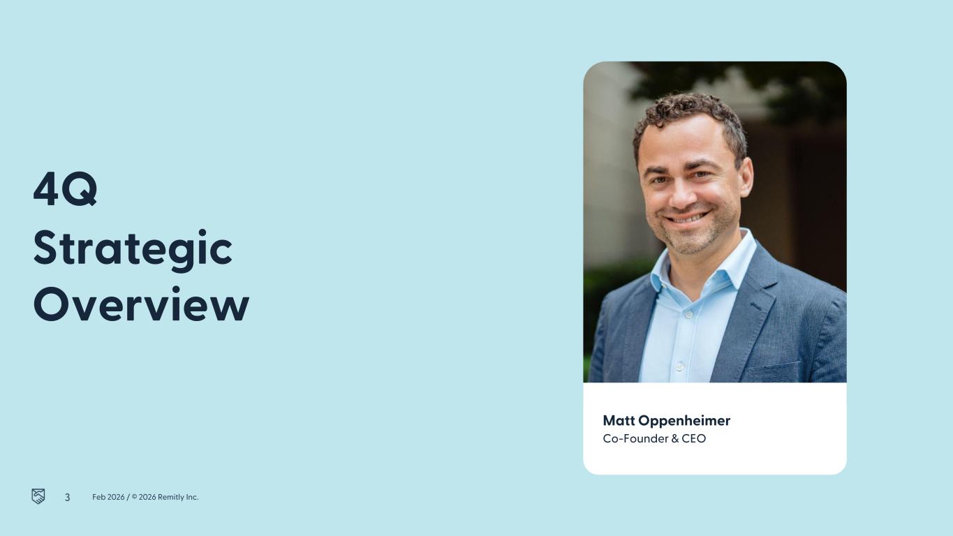 Feb 2026 / © 2026 Remitly Inc. 4Q Strategic Overview Matt Oppenheimer Co-Founder & CEO 3