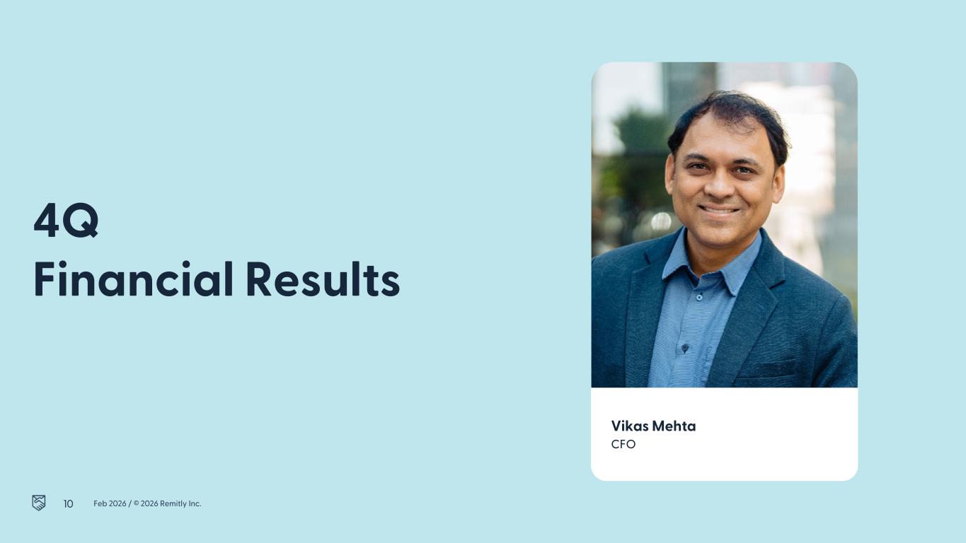 Feb 2026 / © 2026 Remitly Inc. 4Q Financial Results Vikas Mehta CFO 10