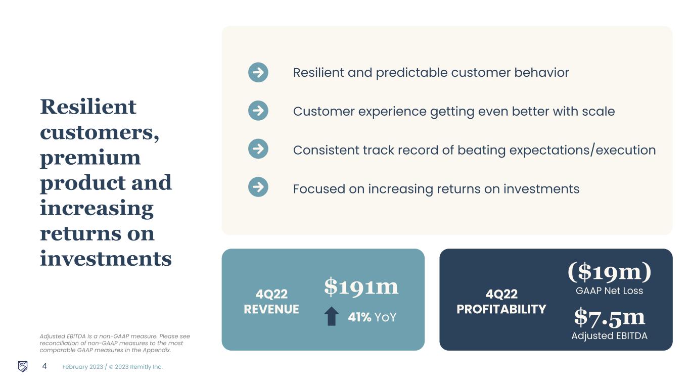 February 2023 / © 2023 Remitly Inc. 4Q Strategic Overview 3 Matt Oppenheimer Co-Founder & CEO