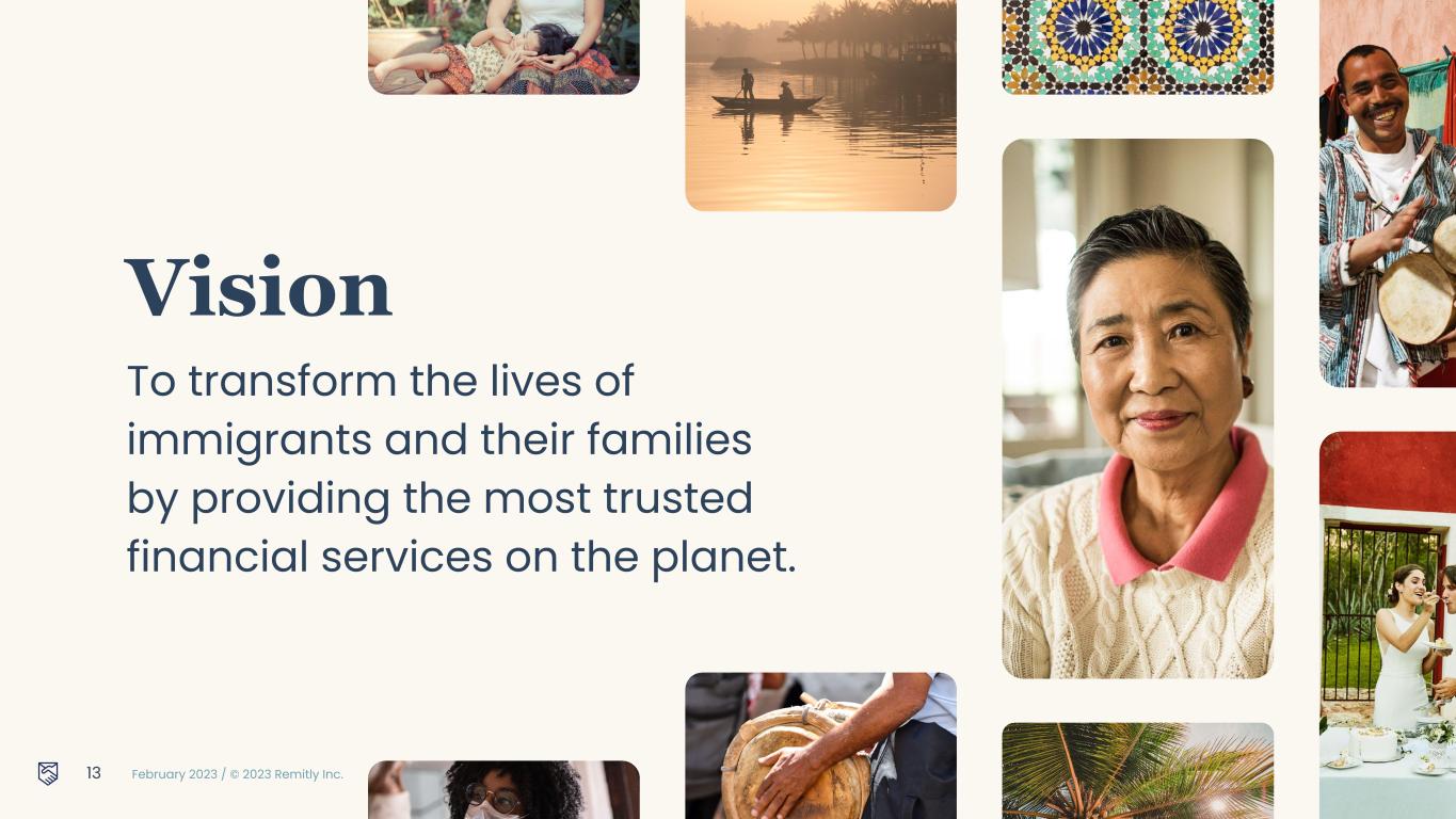 February 2023 / © 2023 Remitly Inc. Vision To transform the lives of immigrants and their families by providing the most trusted financial services on the planet. 13