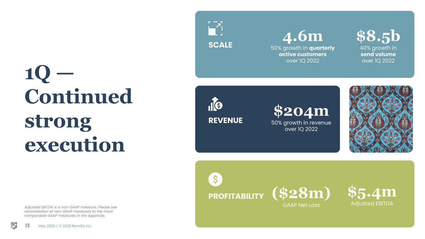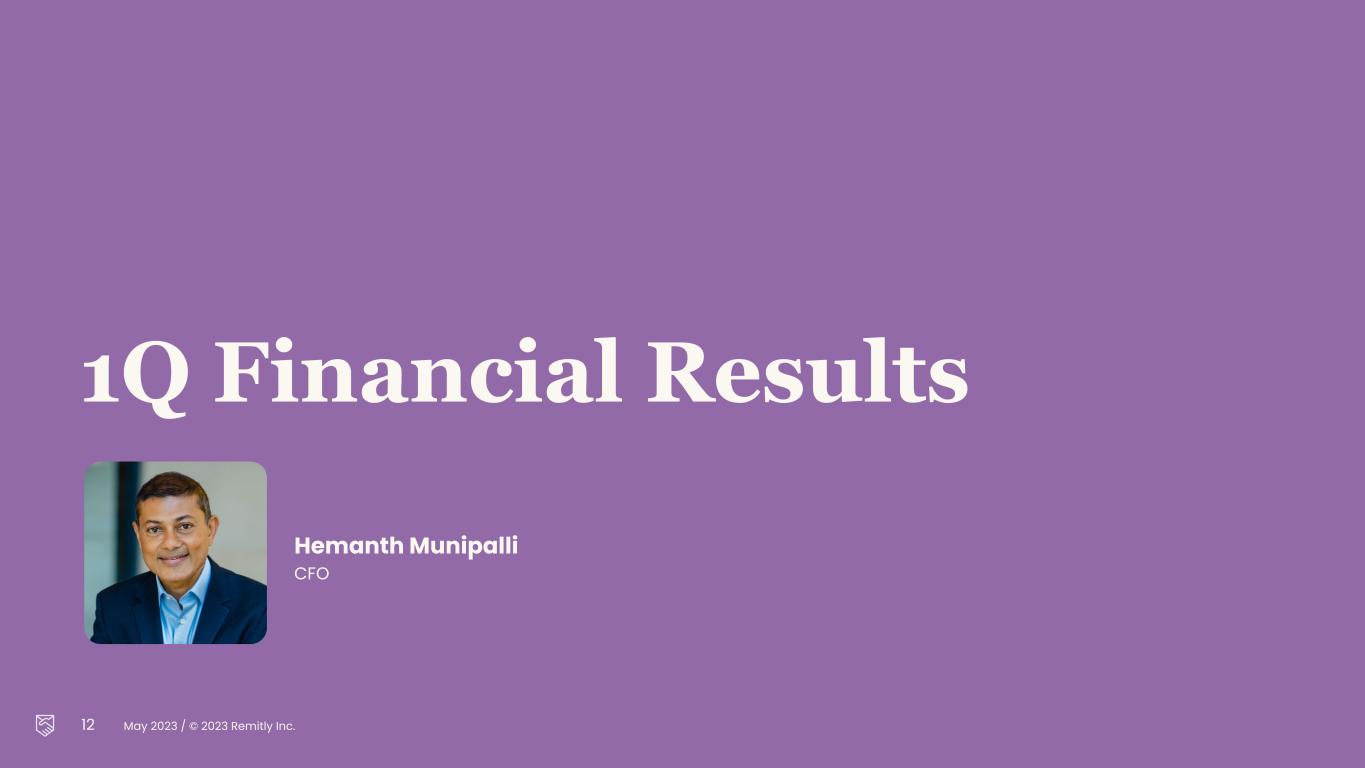 May 2023 / © 2023 Remitly Inc. 12 1Q Financial Results Hemanth Munipalli CFO