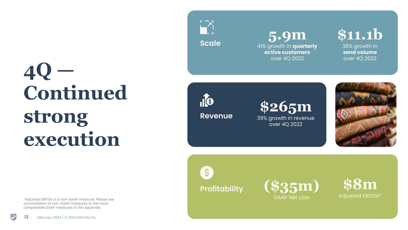 February 2024 / © 2024 Remitly Inc. 12 4Q Financial Results Hemanth Munipalli CFO