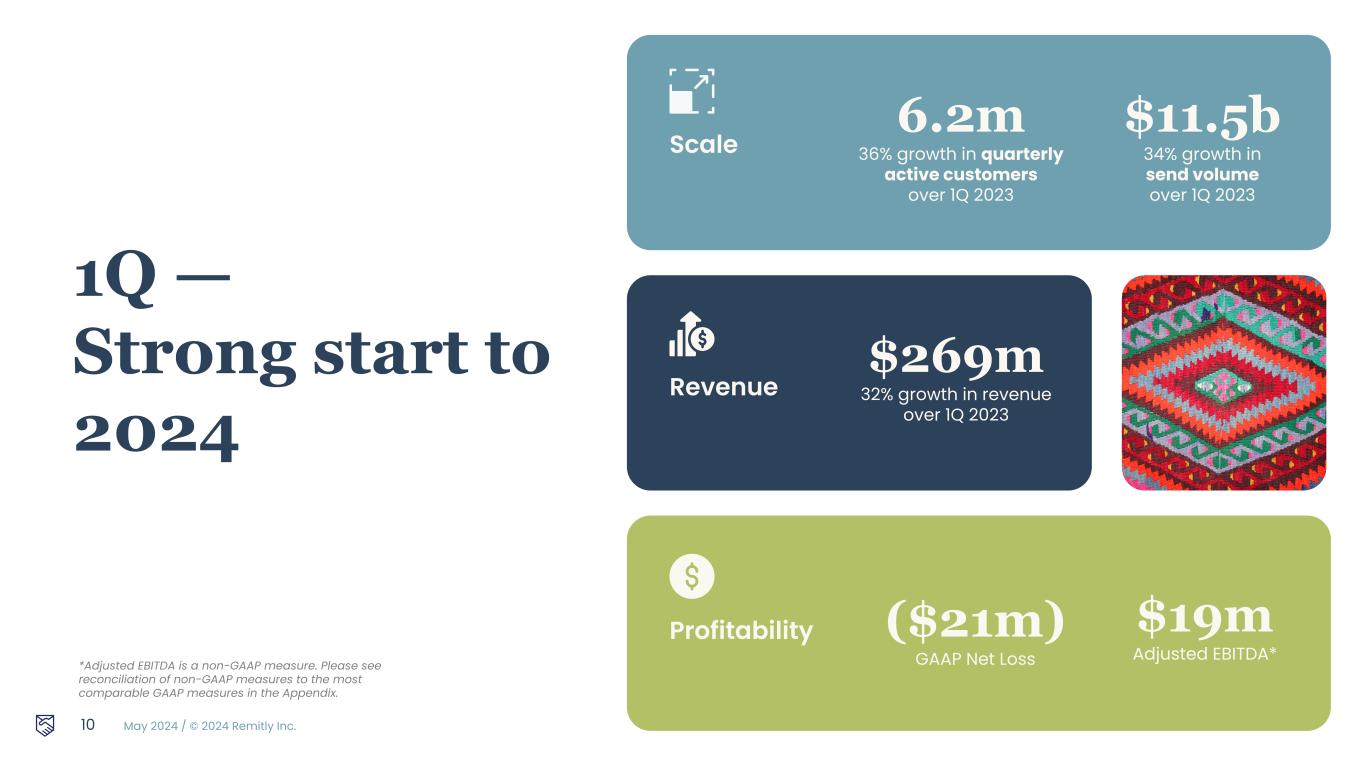 May 2024 / © 2024 Remitly Inc. 9 1Q Financial Results Hemanth Munipalli CFO