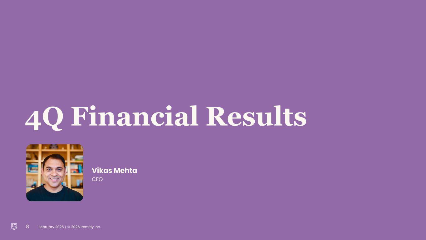 February 2025 / © 2025 Remitly Inc. 8 4Q Financial Results Vikas Mehta CFO