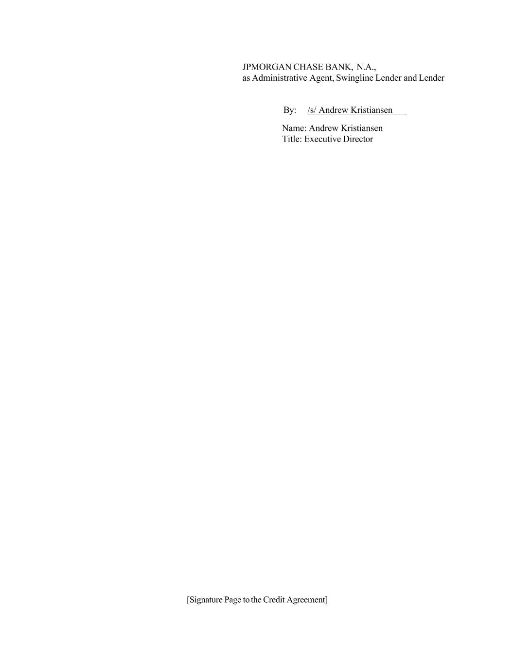 [Signature Page to the Credit Agreement] JPMORGAN CHASE BANK, N.A., as Administrative Agent, Swingline Lender and Lender By: /s/ Andrew Kristiansen Name: Andrew Kristiansen Title: Executive Director