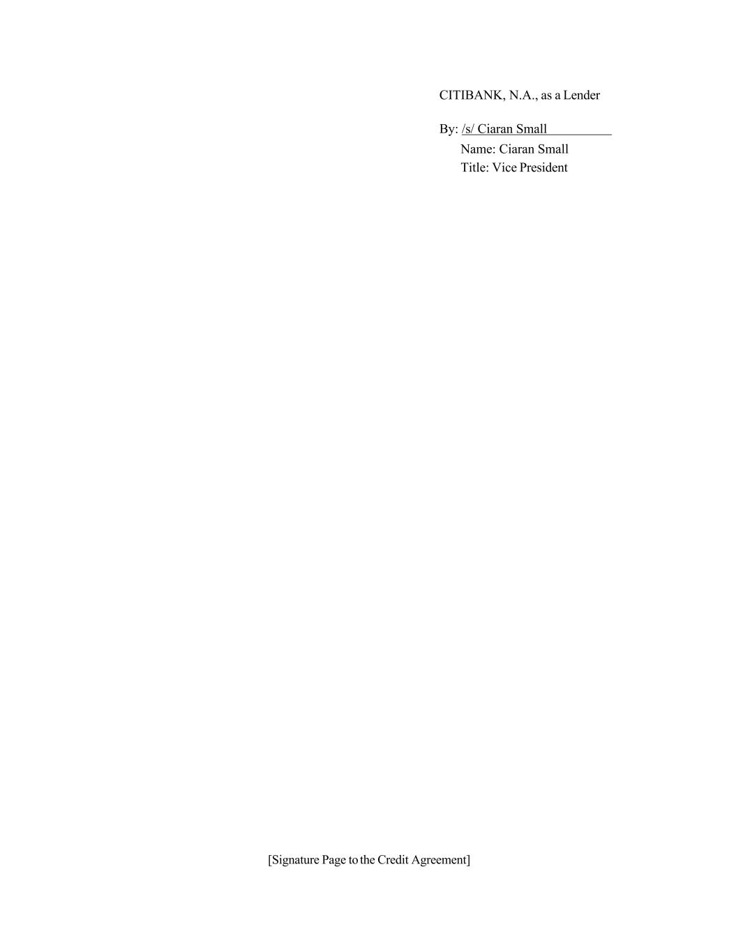 [Signature Page to the Credit Agreement] CITIBANK, N.A., as a Lender By: /s/ Ciaran Small Name: Ciaran Small Title: Vice President