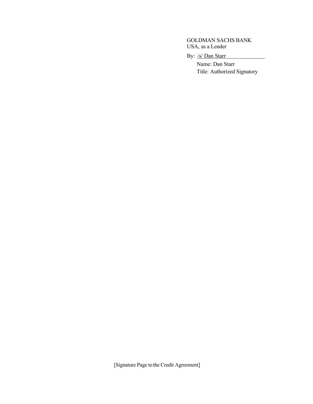 [Signature Page to the Credit Agreement] GOLDMAN SACHS BANK USA, as a Lender By: /s/ Dan Starr Name: Dan Starr Title: Authorized Signatory