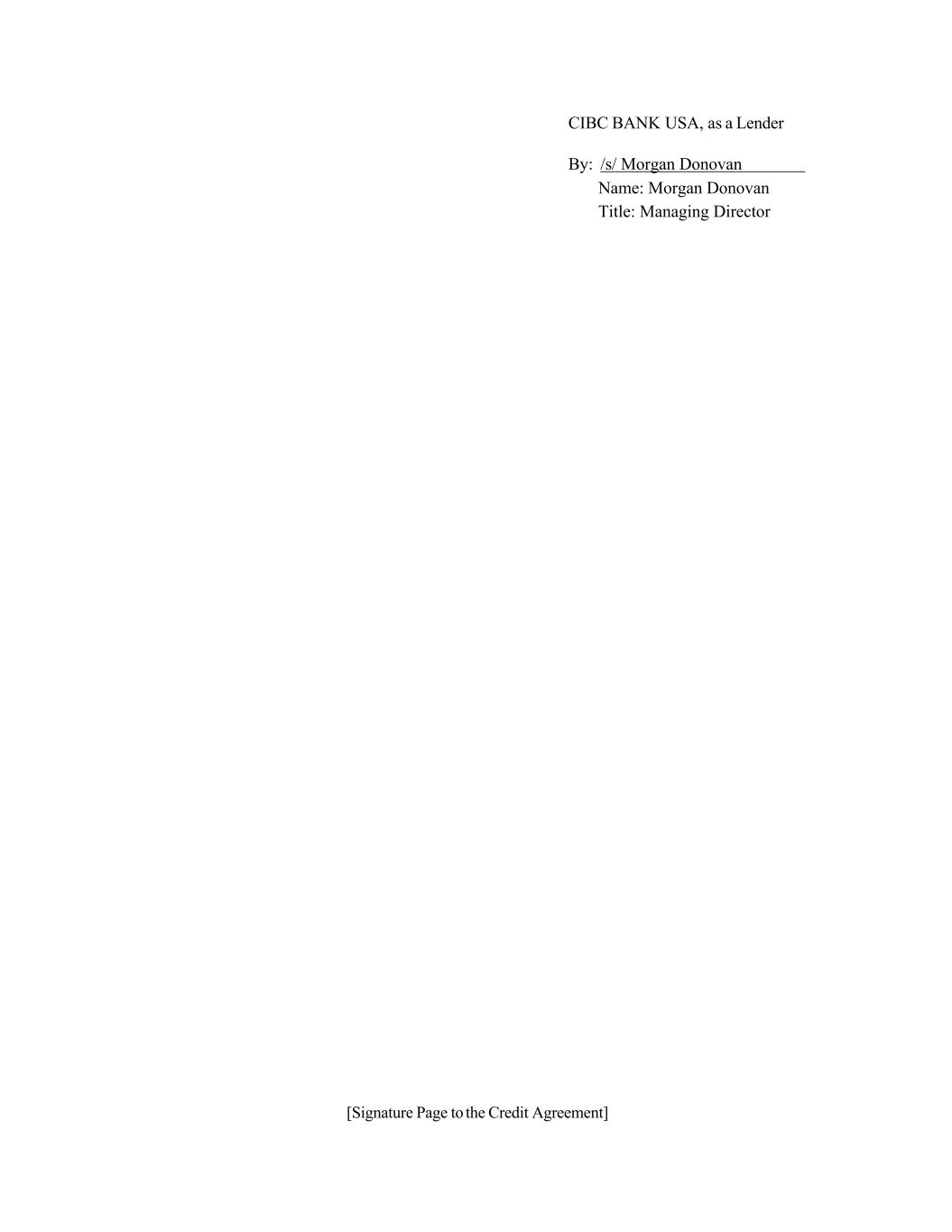 [Signature Page to the Credit Agreement] CIBC BANK USA, as a Lender By: /s/ Morgan Donovan Name: Morgan Donovan Title: Managing Director