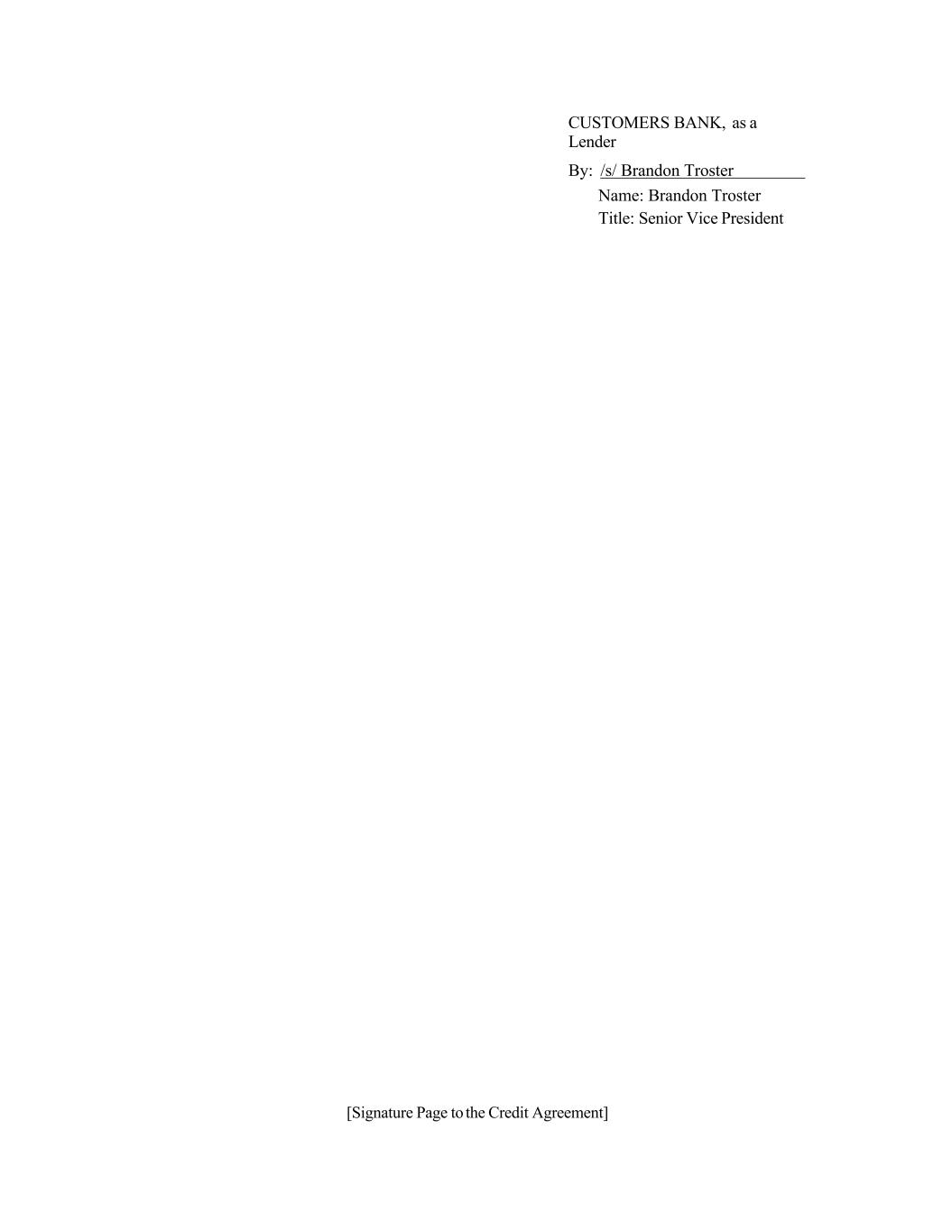 [Signature Page to the Credit Agreement] CUSTOMERS BANK, as a Lender By: /s/ Brandon Troster Name: Brandon Troster Title: Senior Vice President