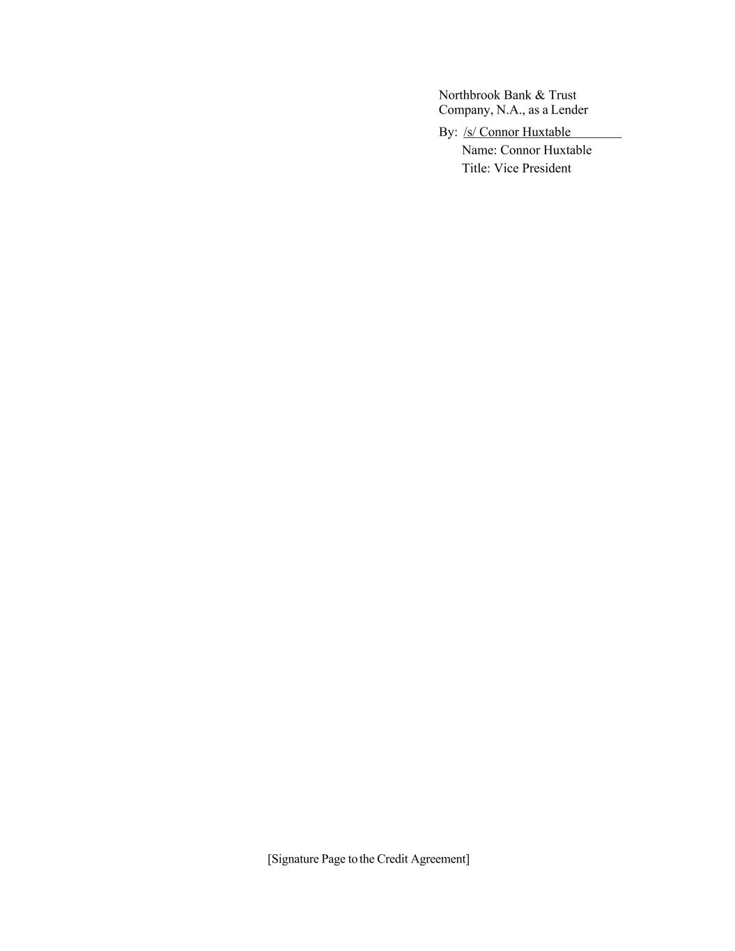 [Signature Page to the Credit Agreement] Northbrook Bank & Trust Company, N.A., as a Lender By: /s/ Connor Huxtable Name: Connor Huxtable Title: Vice President