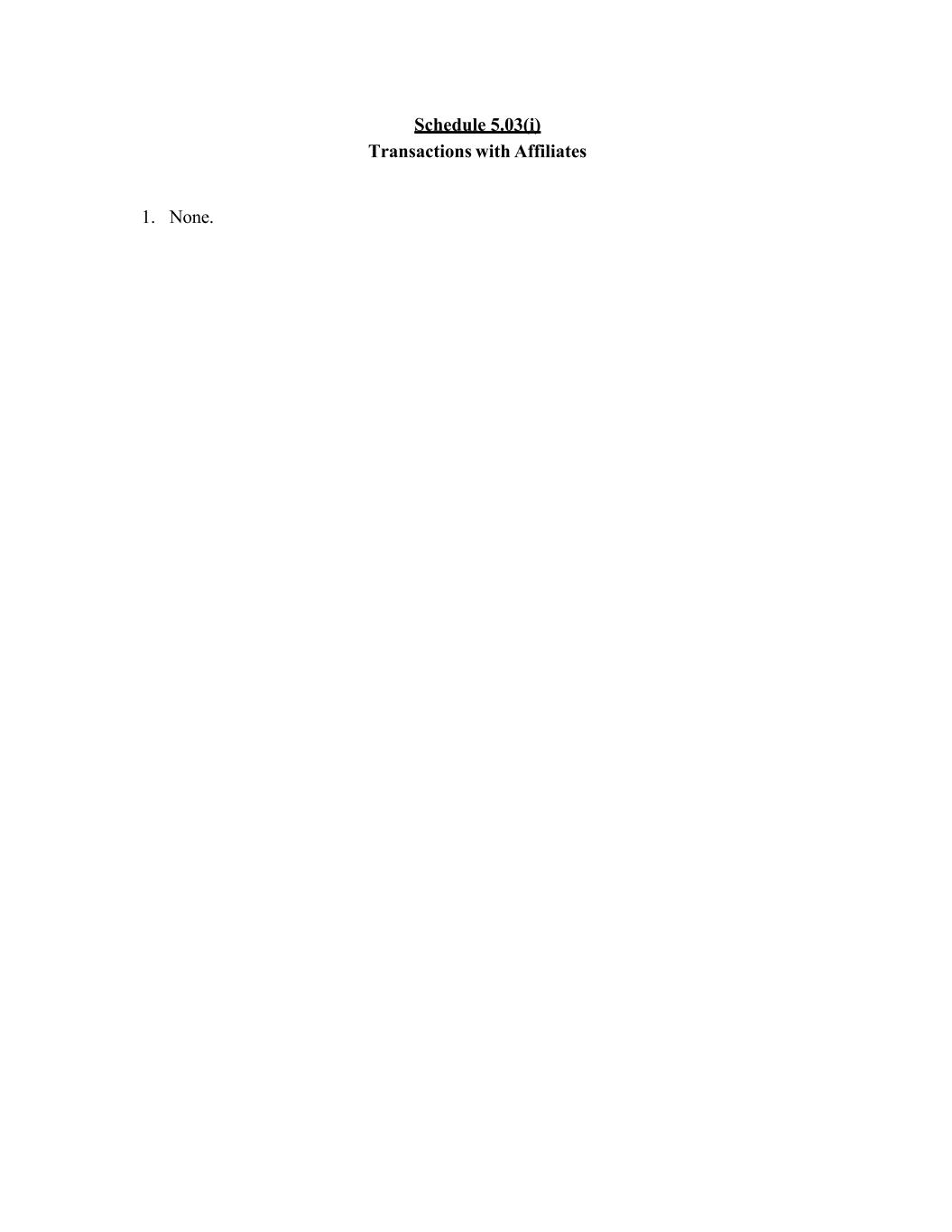 Schedule 5.03(i) Transactions with Affiliates 1. None.