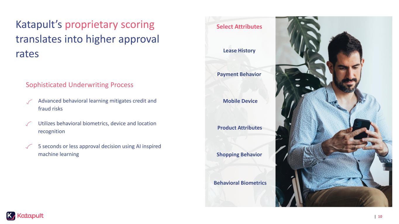 Our proprietary tech solution creates a deeper cycle of engagement between consumers and merchants Our platform solves critical consumer pain points that drive higher conversion for merchants We are transforming the way nonprime consumers shop and how merchants access this underserved segment C O N S U M E R C H E C KO U T M E R C H A N T I N T E G R AT I O N Off-the-shelf solutions Platform plugins | 9