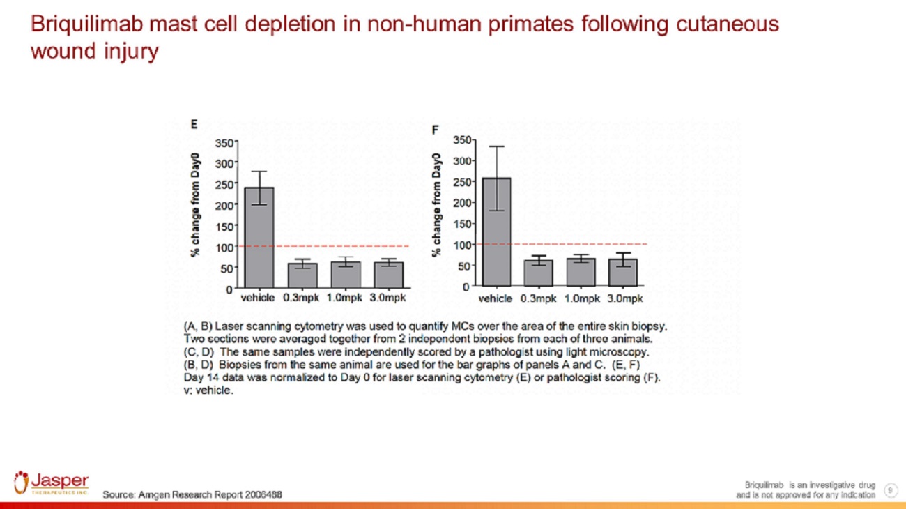 9 Briquilimab is an investigative drug and is not approved for any indication Source: Amgen Research Report 2006488 Briquilimab mast cell depletion in non - human primates following cutaneous wound injury