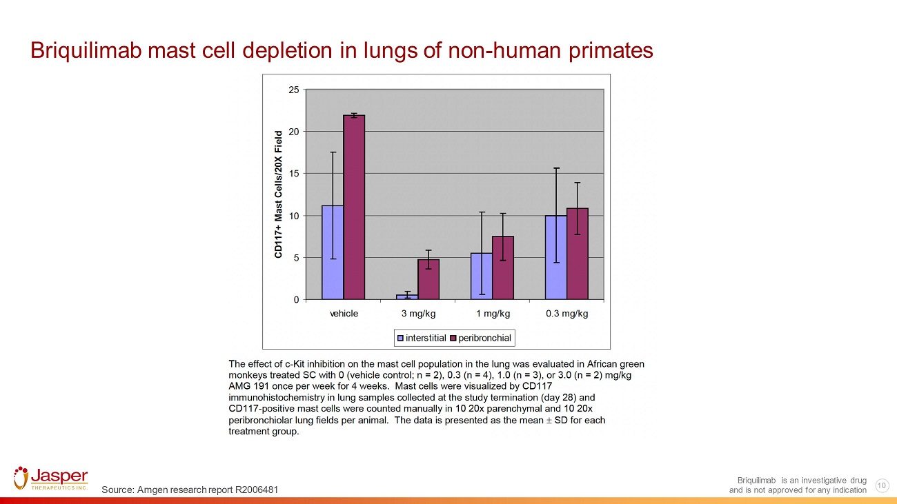 10 Briquilimab is an investigative drug and is not approved for any indication Source: Amgen research report R2006481 Briquilimab mast cell depletion in lungs of non - human primates