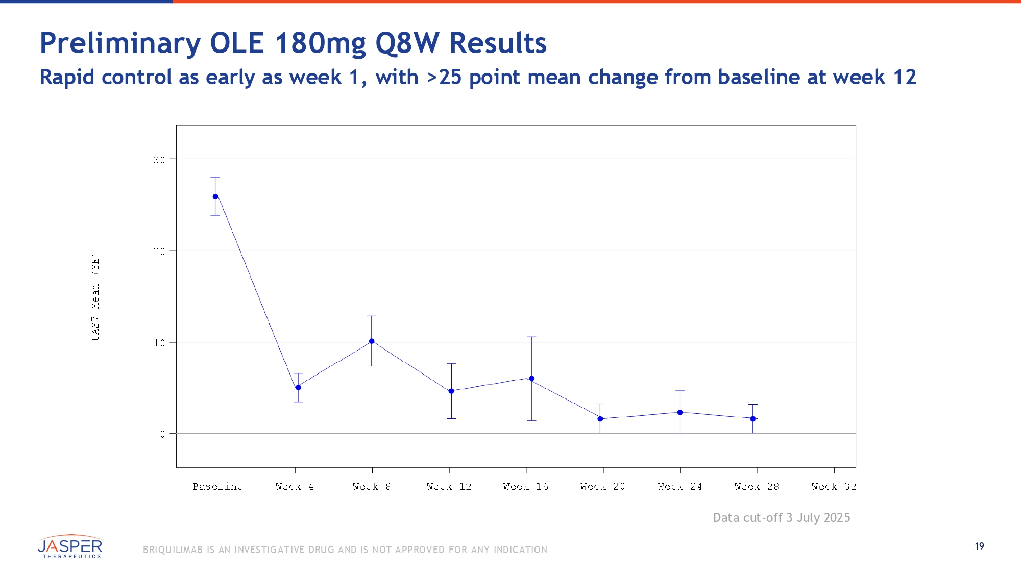 19 BRIQUILIMAB IS AN INVESTIGATIVE DRUG AND IS NOT APPROVED FOR ANY INDICATION Preliminary OLE 180mg Q8W Results Rapid control as early as week 1, with >25 point mean change from baseline at week 12 Data cut - off 3 July 2025