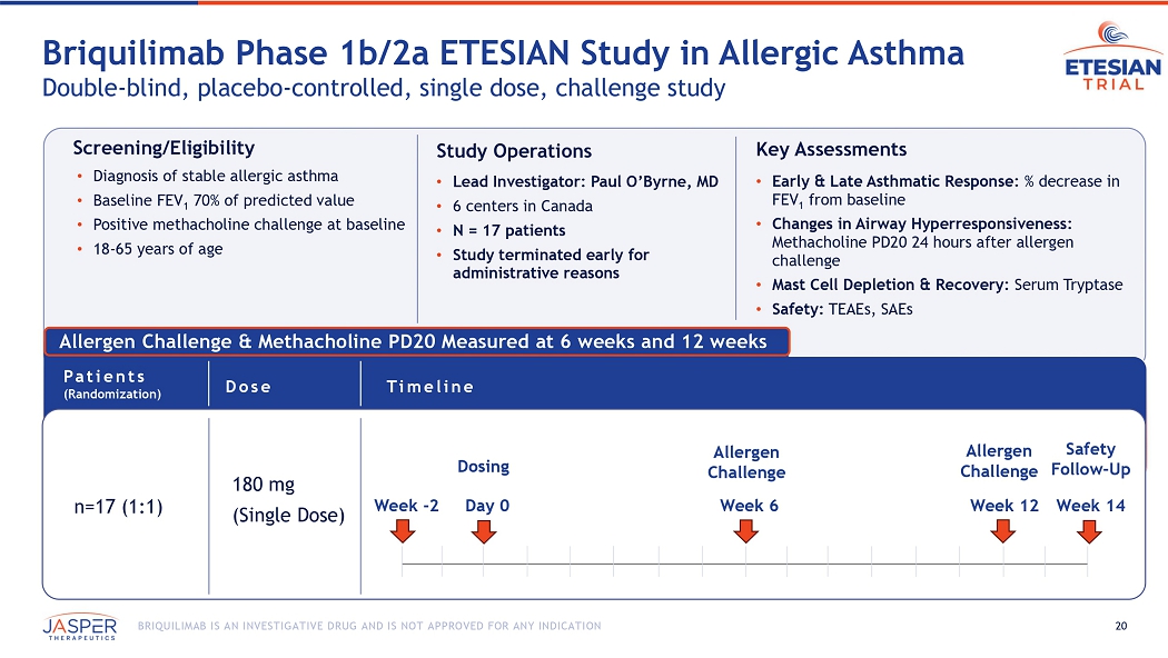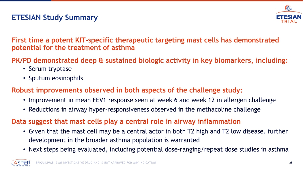 Briquilimab in Allergic Asthma Dr. Daniel Adelman, Acting CMO Jasper Therapeutics