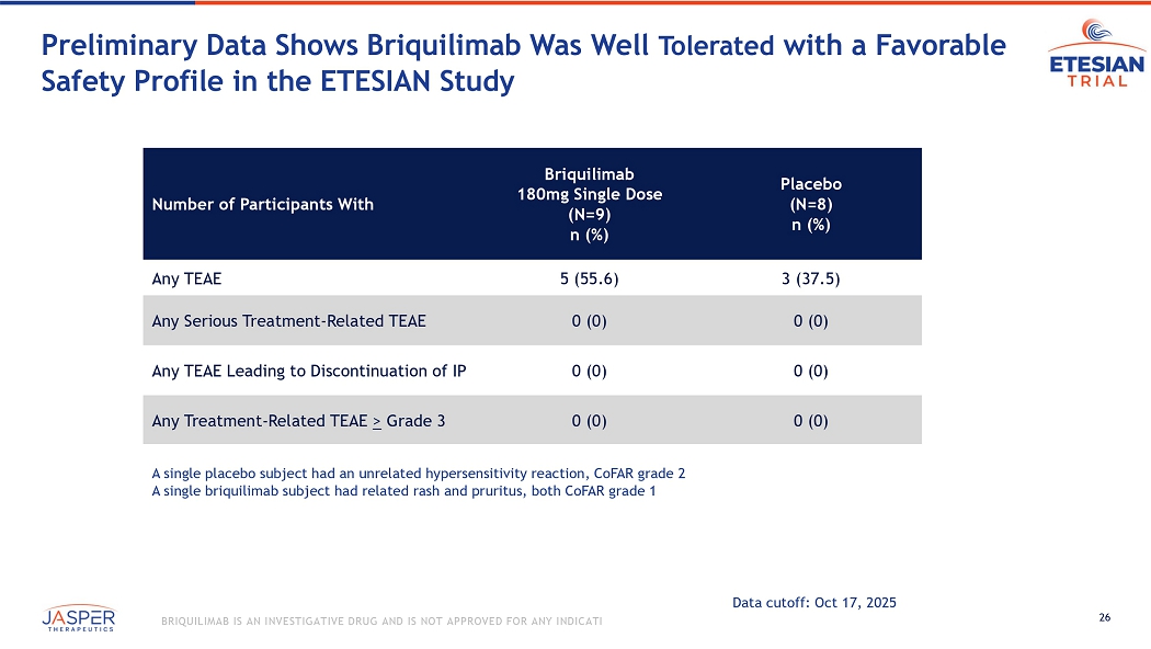 Jasper Therapeutics ETESIAN Data + BEACON Investigation Update December 2025