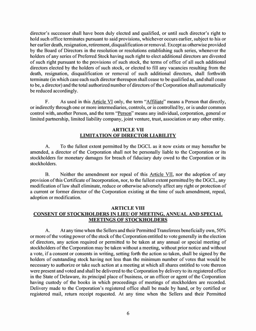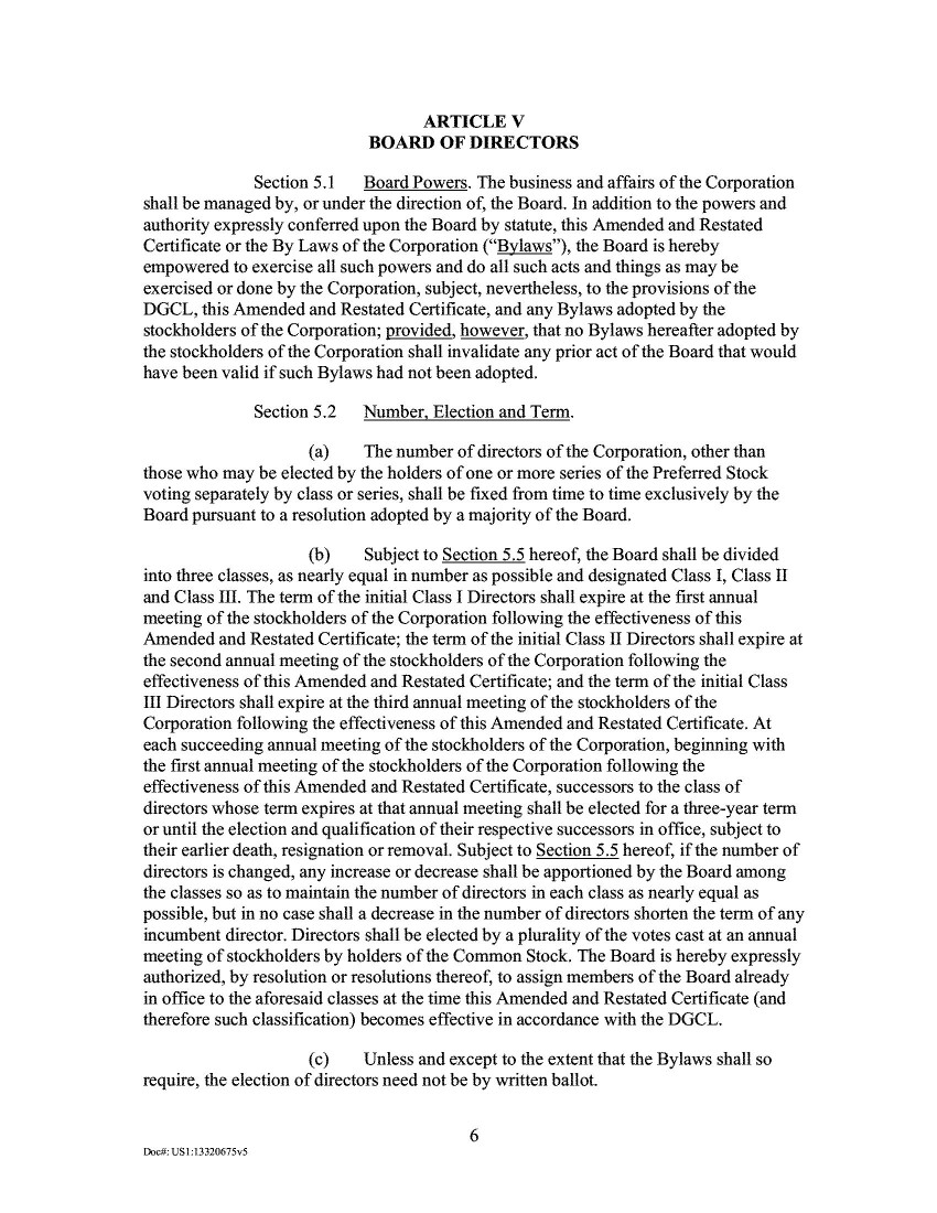 6.       While the proposal to approve and adopt the New Certificate of Incorporation received an overwhelming, majority approval of the then-existing holders of Class A Common Stock, the 2020 Proxy did not disclose that the Company was seeking a separate vote of a majority of the Class A Common Stock. Section 242(b)(2) of the Delaware General Corporation Law (the “DGCL”) provides that separate classes—but not separate series—are entitled to vote separately as a class on certificate of incorporation amendments that increase the number of authorized shares. In relevant part, Section 242(b)(2) provides:
