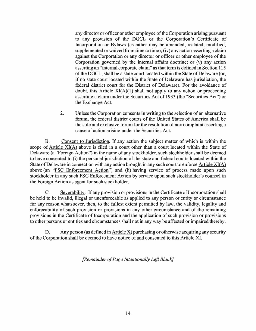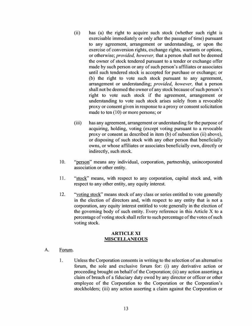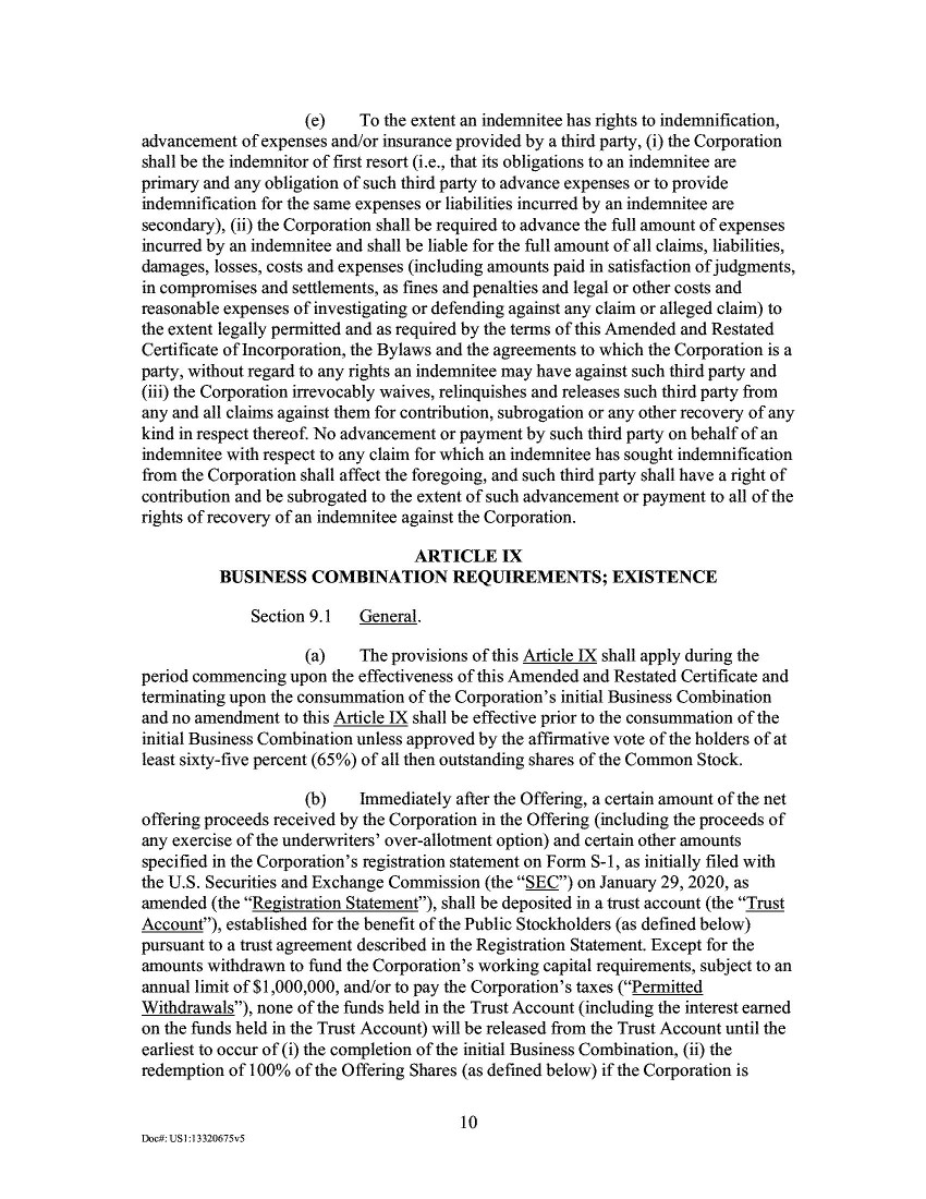 13.         On February 19, 2020, the Company filed a Form 8-K, announcing the consummation of its IPO. In connection with the IPO, the Company filed the Old Certificate of Incorporation, attached hereto as Exhibit C. Section 4.1 of the Old Certificate of Incorporation set forth the Company’s authorized capital stock as follows:
