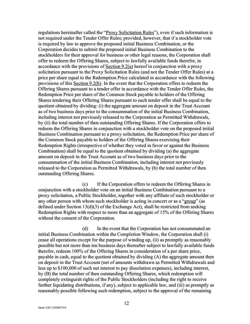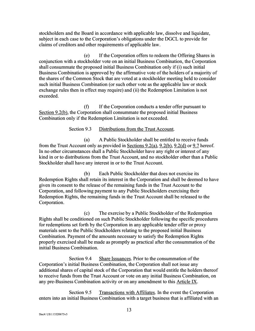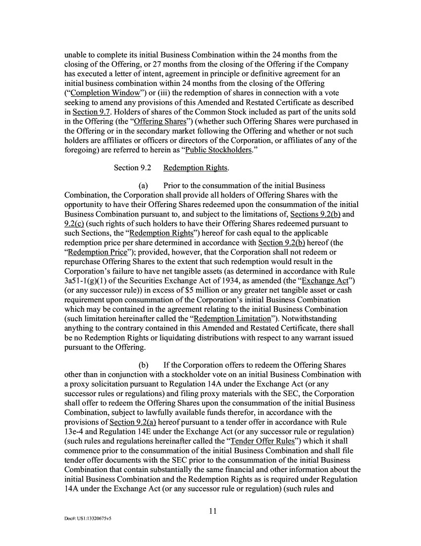 7.             Section 242(b)(2) thus provides that an amendment to change the number of authorized shares of a class of stock requires a separate vote of such class unless the certificate of incorporation contains a “Section 242(b)(2) opt-out provision” specifically denying the class entitlement to a separate vote. Like many SPAC charters, the Company’s amended and restated certificate of incorporation in effect prior to the Merger (the “Old Certificate of Incorporation”) did not contain such a provision.