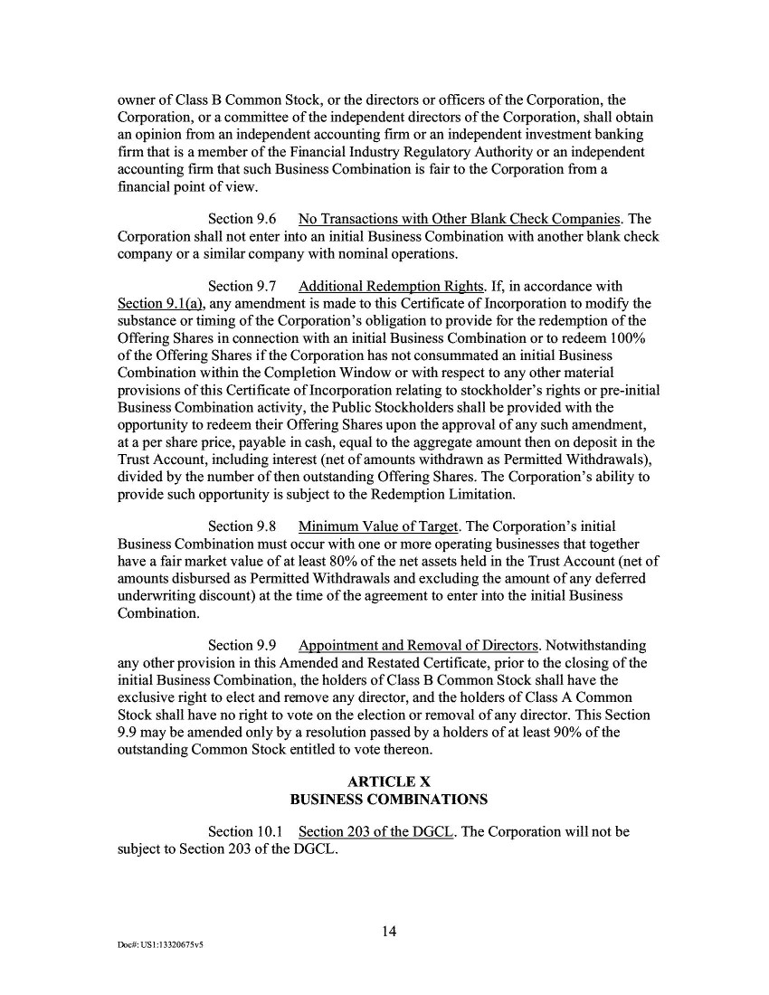 The approval of the [Class A Increase Amendment] will require the affirmative vote of a majority of the votes cast by holders of [the Company’s] outstanding shares of common stock represented at the special meeting by attendance via the virtual meeting website or by proxy and entitled to vote at the [S]pecial [M]eeting. … As discussed above, a vote to approve the governance proposal is an advisory vote, and therefore, is not binding on [the Company] or [the] board[] of directors. Accordingly, regardless of the outcome of the non-binding advisory vote, [the Company] intend[s] that the proposed second amended and restated certificate of incorporation, in the form set forth on Annex B and containing the provisions noted above, will take effect at consummation of the business combination, assuming adoption of the [New Certificate of Incorporation].