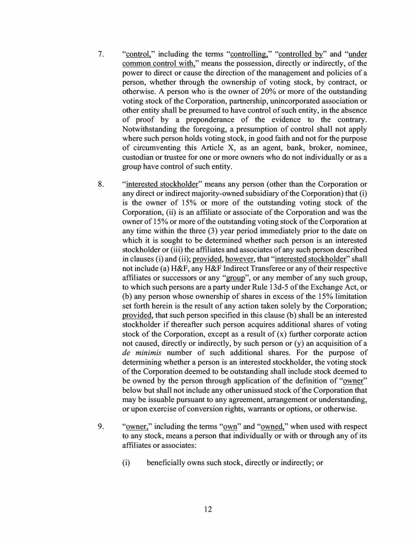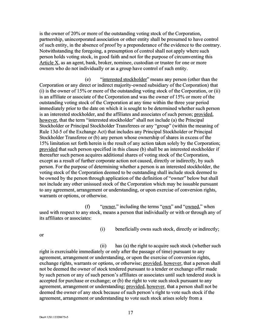 21.         At the Special Meeting, 113,044,972 shares, or approximately 82%, of the then-existing outstanding shares of the Company’s common stock entitled to vote were represented by proxy, constituting a quorum. As disclosed in the Company’s October 9, 2020, proxy statement (the “Results Proxy”), the proposal to approve and adopt the New Certificate of Incorporation, which would effect the Class A Increase Amendment, received the affirmative vote of 105,063,930 shares, or approximately 93% of the outstanding shares entitled to vote and represented by proxy at the Special Meeting.