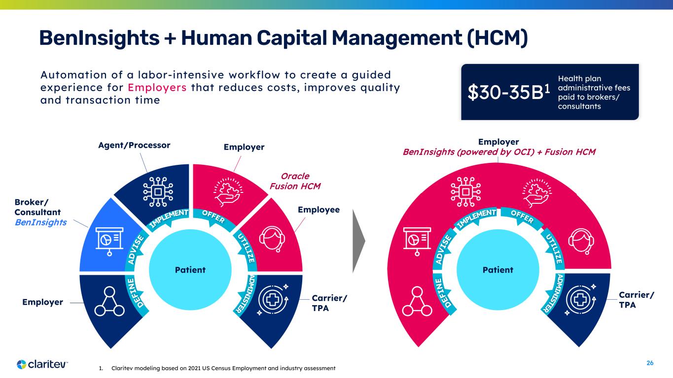 26 Automation of a labor-intensive workflow to create a guided experience for Employers that reduces costs, improves quality and transaction time BenInsights + Human Capital Management (HCM) Employer Broker/ Consultant BenInsights Agent/Processor Employer Employee Carrier/ TPA Patient Employer BenInsights (powered by OCI) + Fusion HCM Carrier/ TPA Patient 1. Claritev modeling based on 2021 US Census Employment and industry assessment Oracle Fusion HCM Health plan administrative fees paid to brokers/ consultants $30-35B1
