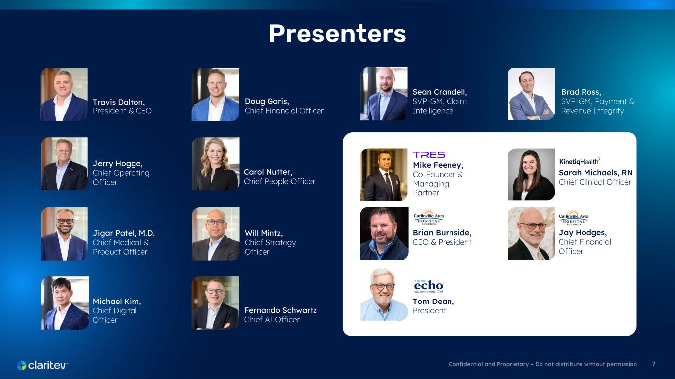 Confidential and Proprietary – Do not distribute without permission 7 Presenters Travis Dalton, President & CEO Doug Garis, Chief Financial Officer Jerry Hogge, Chief Operating Officer Carol Nutter, Chief People Officer Will Mintz, Chief Strategy Officer Jigar Patel, M.D. Chief Medical & Product Officer Michael Kim, Chief Digital Officer Fernando Schwartz Chief AI Officer Sean Crandell, SVP-GM, Claim Intelligence Brad Ross, SVP-GM, Payment & Revenue Integrity Mike Feeney, Co-Founder & Managing Partner Brian Burnside, CEO & President Jay Hodges, Chief Financial Officer Sarah Michaels, RN Chief Clinical Officer Tom Dean, President
