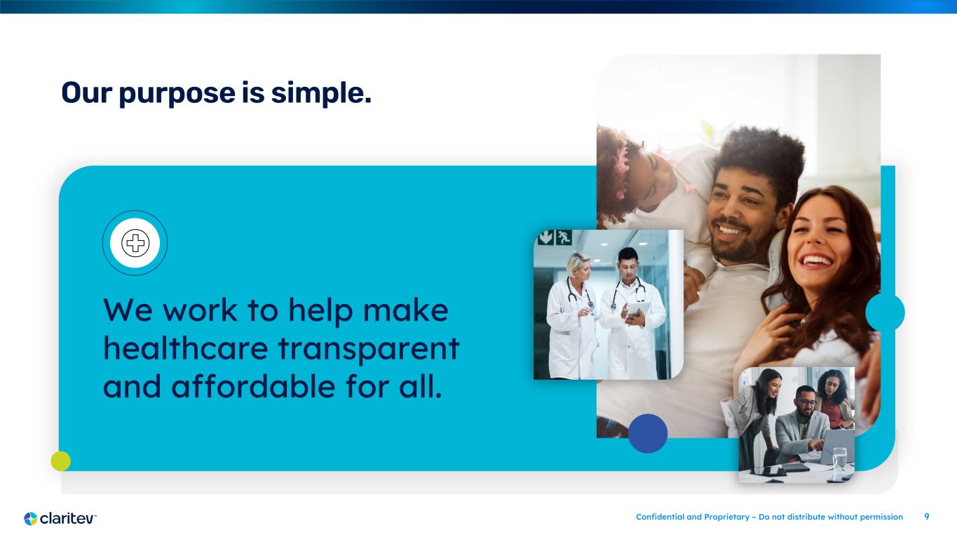Confidential and Proprietary – Do not distribute without permission 9 Our purpose is simple. We work to help make healthcare transparent and affordable for all.