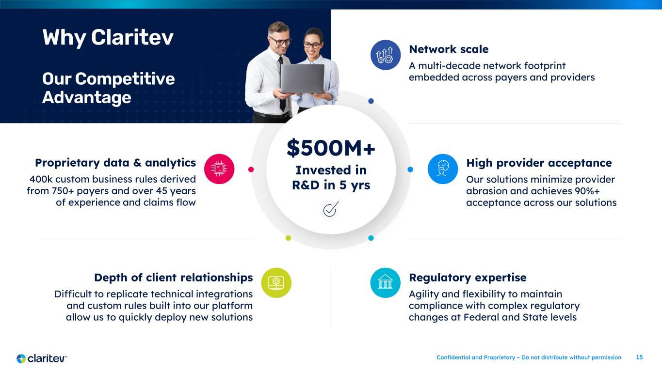 Confidential and Proprietary – Do not distribute without permission 14 Marketplace Aligned We are advancing our strategy to offer our products and services across multiple vertical markets and distribution channels Claims Intelligence Payment & Revenue Integrity Network Data & Analytics Payers | TPA Brokers | Employers Providers Public Sector Channel Partners International Recent Momentum