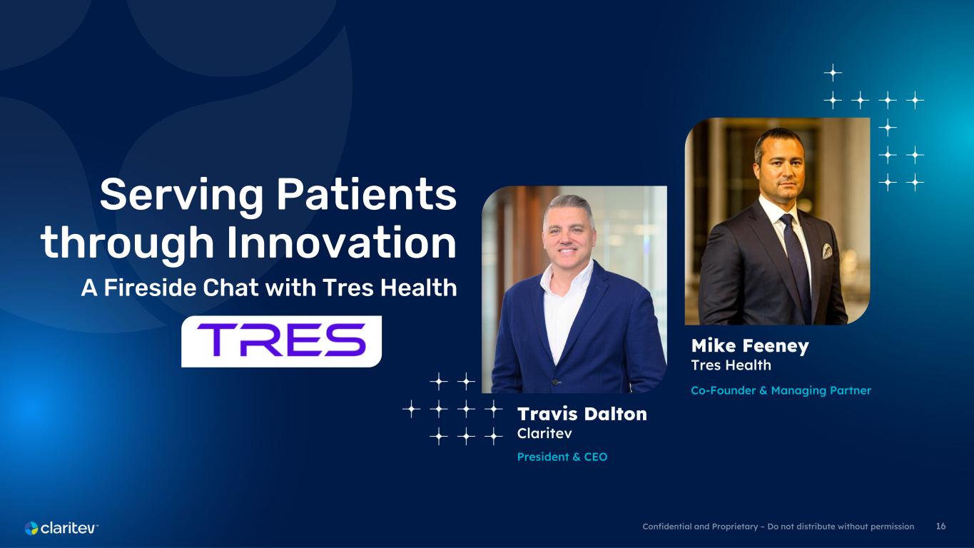 Confidential and Proprietary – Do not distribute without permission 16 Serving Patients through Innovation A Fireside Chat with Tres Health Travis Dalton Claritev Mike Feeney Tres Health Co-Founder & Managing Partner President & CEO