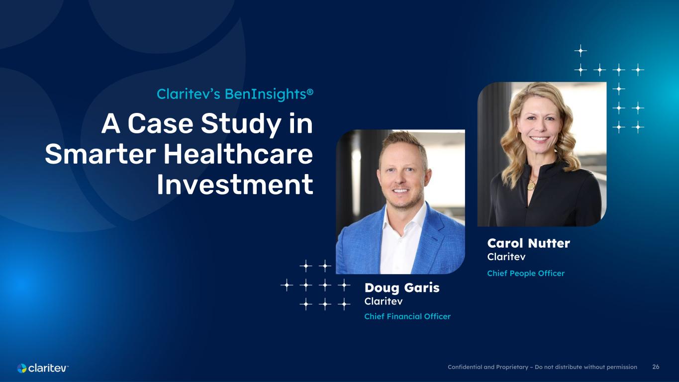 Confidential and Proprietary – Do not distribute without permission 26 Chief People Officer Doug Garis Claritev Chief Financial Officer Carol Nutter Claritev A Case Study in Smarter Healthcare Investment Claritev’s BenInsights®