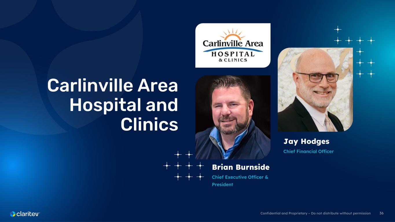 Confidential and Proprietary – Do not distribute without permission 36 Carlinville Area Hospital and Clinics Chief Financial Officer Jay Hodges Brian Burnside Chief Executive Officer & President