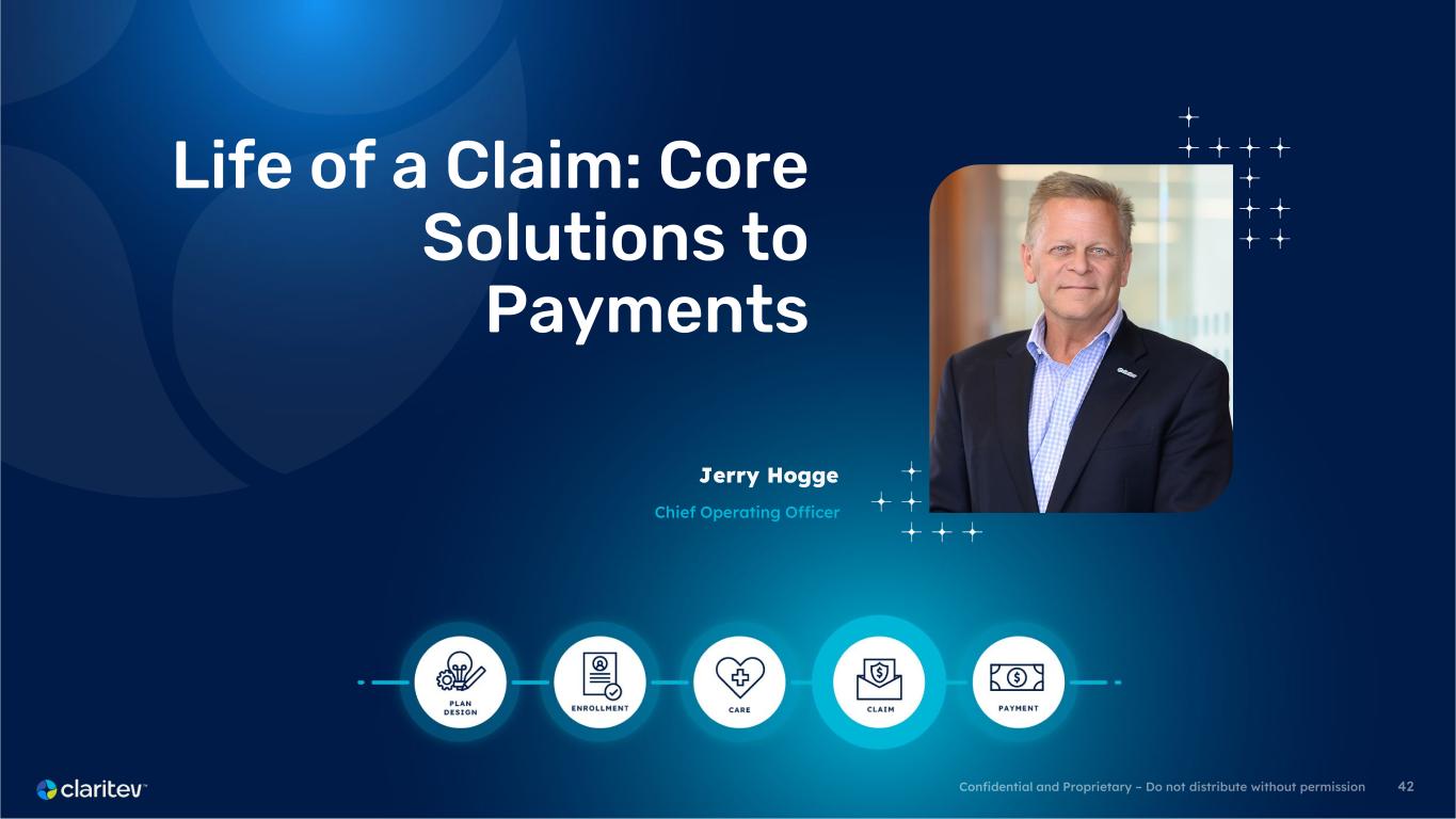 Confidential and Proprietary – Do not distribute without permission 42 Life of a Claim: Core Solutions to Payments Jerry Hogge Chief Operating Officer
