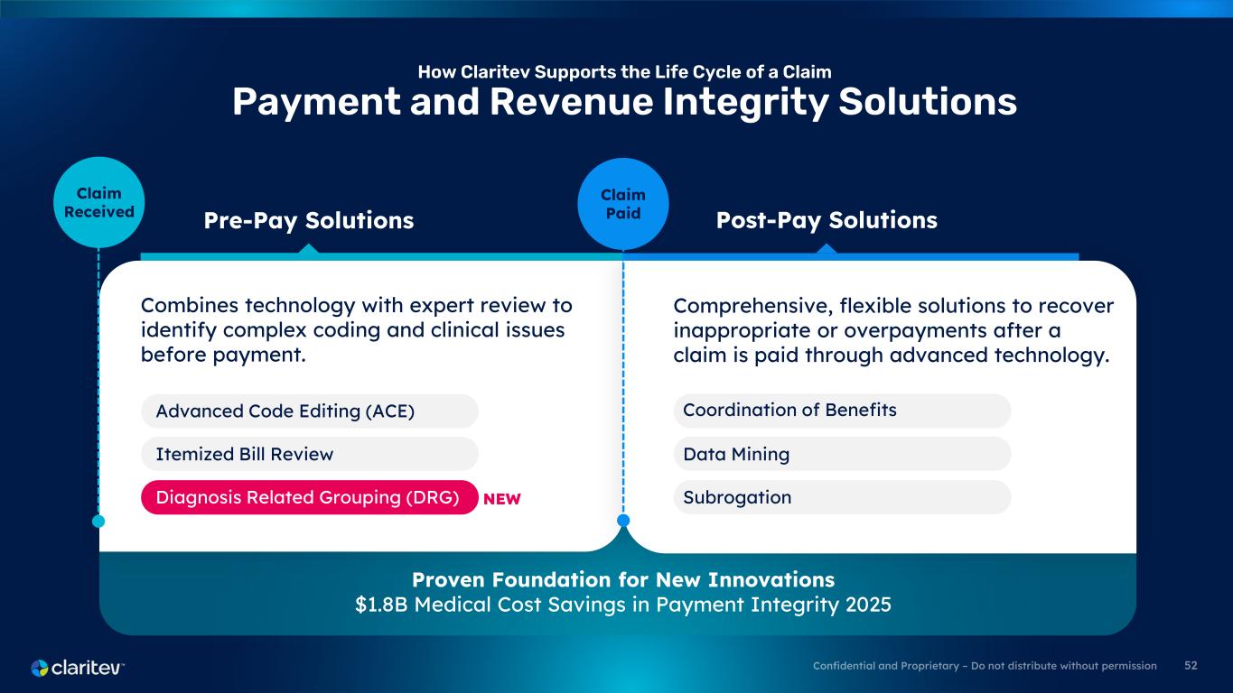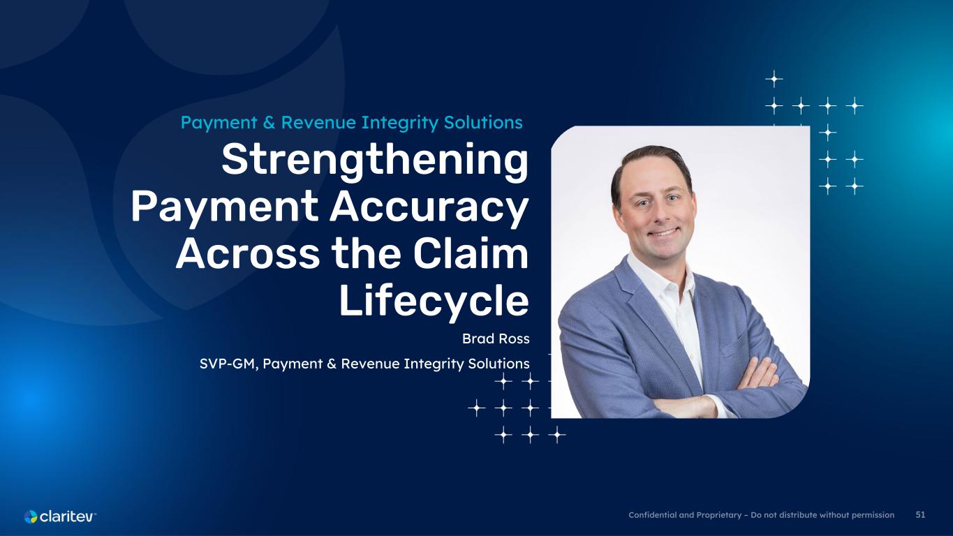 Confidential and Proprietary – Do not distribute without permission 51 Strengthening Payment Accuracy Across the Claim Lifecycle Brad Ross SVP-GM, Payment & Revenue Integrity Solutions Payment & Revenue Integrity Solutions