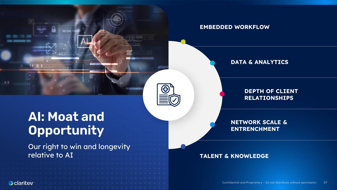 Confidential and Proprietary – Do not distribute without permission 67 NETWORK SCALE & ENTRENCHMENT DEPTH OF CLIENT RELATIONSHIPS DATA & ANALYTICS EMBEDDED WORKFLOW TALENT & KNOWLEDGE AI: Moat and Opportunity Our right to win and longevity relative to AI